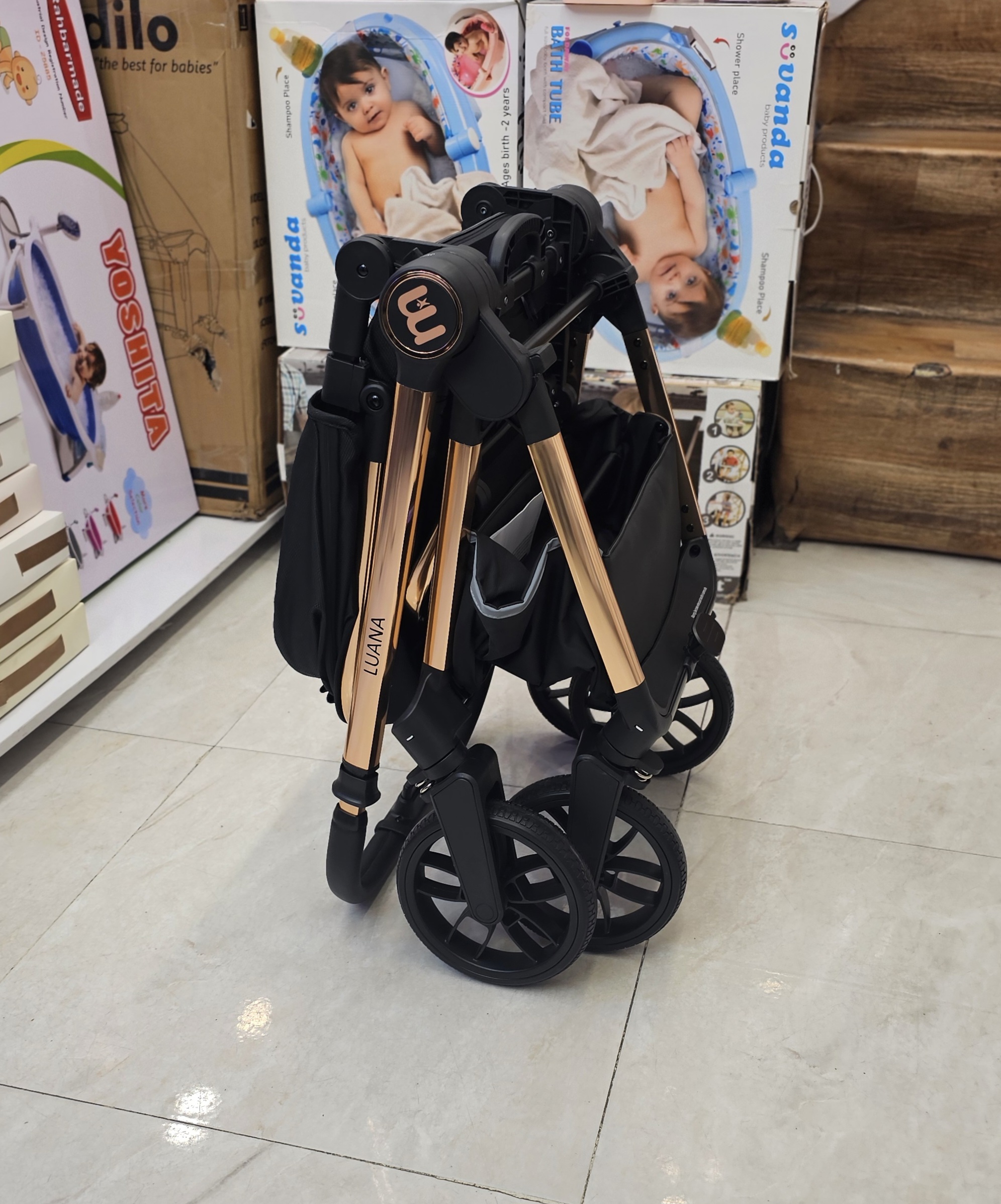کالسکه جدید مایلر مدل لوانا تکنولوژی ۴چرخ چرخشی دارد.این محصول هم کالسکه تک دارد و هم کالسکه وکریر به صورت ست ارائه میشود.
