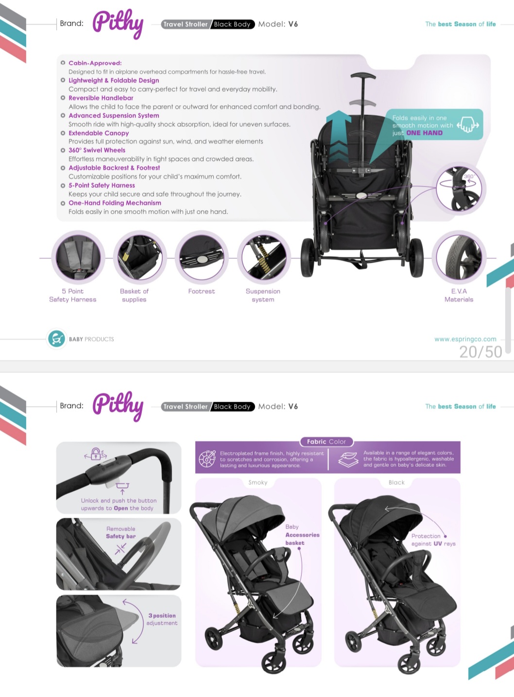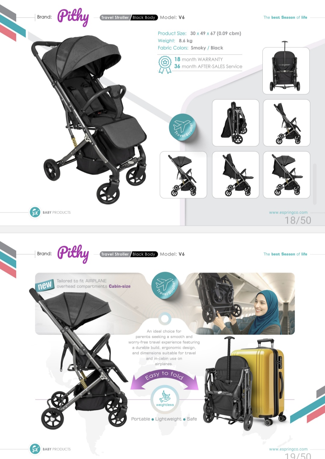 کالسکه مسافرتی اسپرینگ مدل پیتی – همراه سبک، شیک و راحت برای سفرهای خانوادگی اگر بهدنبال یک کالسکه سبک، کمجا و در عین حال راحت و کاربردی برای کودک دلبندتان هستید، کالسکه اسپرینگ مدل پیتی انتخابی ایدهآل است. این کالسکه با طراحی مدرن و امکانات بینظیر، همراهی مطمئن برای سفرهای شهری، بینشهری و حتی هوایی شما خواهد بود. ویژگیهای برجسته کالسکه پیتی: ✅ ابعاد مناسب کابین هواپیما طراحی تاشوی هوشمند این مدل به گونهایست که پس از جمع شدن، ابعاد آن با قوانین اکثر شرکتهای هواپیمایی همخوانی دارد. بنابراین بهراحتی میتوانید آن را بهعنوان بار دستی با خود به داخل هواپیما ببرید. ✅ سبک، اما مستحکم وزن سبک این کالسکه حمل و نقل آن را بسیار آسان کرده، اما در عین حال فریم فلزی مقاوم، ایمنی کودک را تضمین میکند. ✅ دارای کمکفنر حرفهای چرخهای مجهز به کمکفنر، حرکت روان و بدون لرزش در مسیرهای ناهموار را فراهم میکنند، تا فرزندتان همیشه راحت و آرام باشد. ✅ قابلیت تنظیم حالت خواب کامل و زیرپایی قابل تنظیم پشتی این کالسکه قابلیت خواب کامل دارد، بنابراین کودک میتواند در مسیرهای طولانی بهراحتی بخوابد. همچنین زیرپایی قابل تنظیم، راحتی بیشتر را هنگام خواب یا استراحت فراهم میکند. ✅ سایبان بزرگ و محافظتی سایبان این کالسکه با پوشش گسترده و پارچه ضد UV، از کودک در برابر نور آفتاب و وزش باد محافظت میکند. ✅ سبد جادار برای وسایل کودک زیر کالسکه یک سبد جادار برای قرار دادن کیف وسایل نوزاد، خریدهای سبک یا لوازم شخصی در نظر گرفته شده است. ✅ طراحی شیک و رنگبندی متنوع مدل پیتی با طراحی ساده و رنگهای جذاب، بهراحتی با سبک پوشش والدین هماهنگ میشود و ظاهر شیکی دارد.