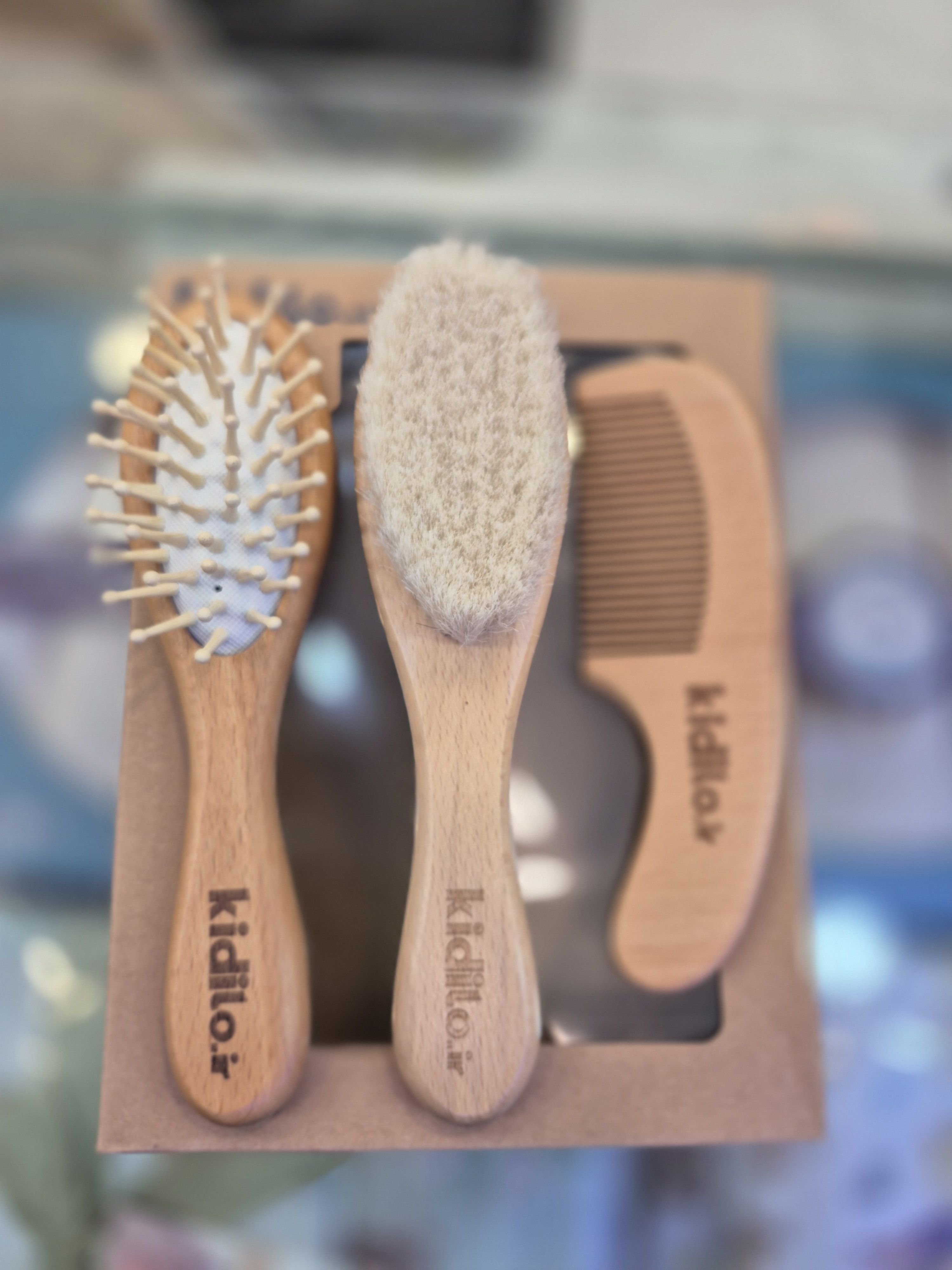 با شانه و برس چوبی ۳ تیکه نوزادی کیدیلو، مراقب نرمی و سلامت موهای نوزاد عزیزتان باشید. طراحی ارگونومیک و مواد طبیعی این محصول، انتخابی ایدهآل برای راحتی و آرامش کودک شماست. هدیهای شیک و کاربردی که لحظات مراقبت را به تجربهای لذتبخش تبدیل میکند. الآن تهیه کنید و بهترینها را به کودک خود هدیه دهید!